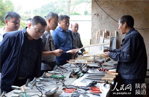 在一处“铁业社”的房子里,61岁的老铁匠梁玉前,一手拉着风箱,一手拿着火钳,火苗熊熊燃烧。“近平当年带领我们创建了铁业社,村子旅游发展起来了,我就回乡创业了。”在火光的映照下梁玉前笑得很开心,“村里每个月给我发2600元工资,打铁挣的钱也归我自己,老伴给村子打扫卫生每月也有1200元工资,日子过得美着咧。”说着,他从火中拉出火钳,将锻打的铁器放在铁墩子上,抡起铁锤开始锻打。